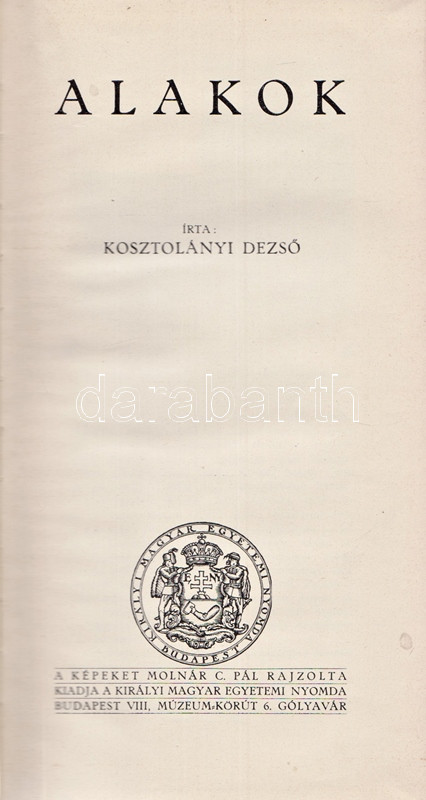 Budapest, [1929]. Királyi Magyar Egyetemi Nyomda. 144 + [2] p. Első kiadás.