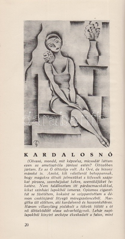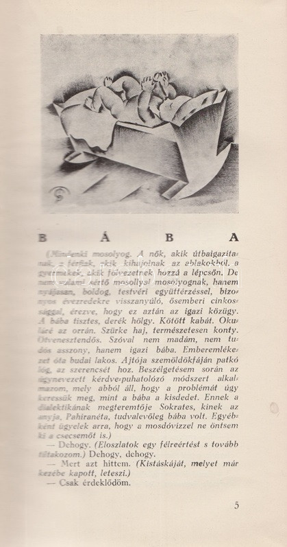 Kosztolányi Dezső humoros tárcanovellái jellegzetes társadalmi típusokról; a tárcák élén Molnár C. Pál grafikusművész szövegközti rajzaival. Az első kötéstáblán apró foltosság.