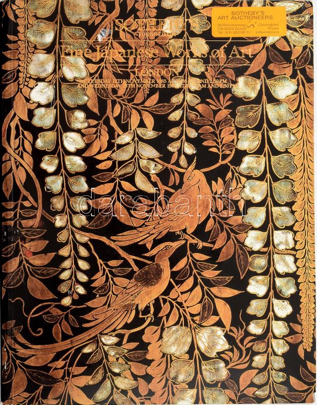 Sotheby's árverési katalógus, japán régiségek témában (Fine Japanese Works of Art), London, 1985, színes és fekete-fehér képekkel rendkívül gazdagon illusztrált.