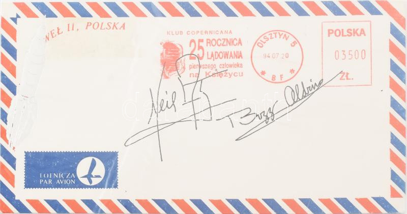 Neil Armstrong (1930-2012), , Buzz Aldrin (1930- ) amerikai űrhajósok aláírásai emlékborítékon / signatures of Neil Armstrong (1930-2012), Buzz Aldrin (1930- ) American astronauts on envelope