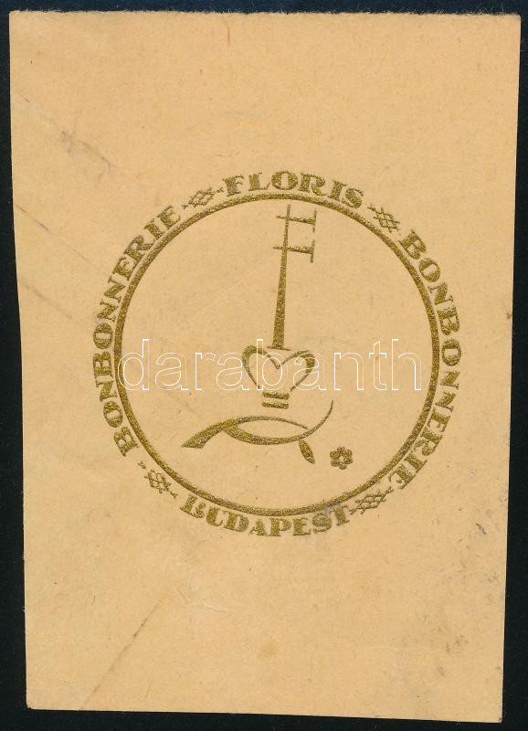 Floris Bonbonnerie Budapest, art deco csokoládé termékcsomagolás terv, 1925-30 körül. Tempera, papír. Jelzés nélkül, feltehetően Galambos Margit terve. Kissé foltos. d: 5 cm