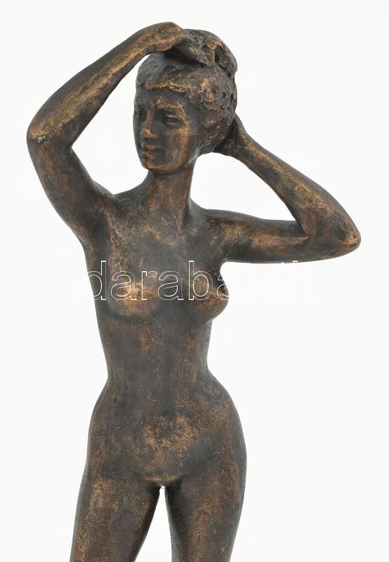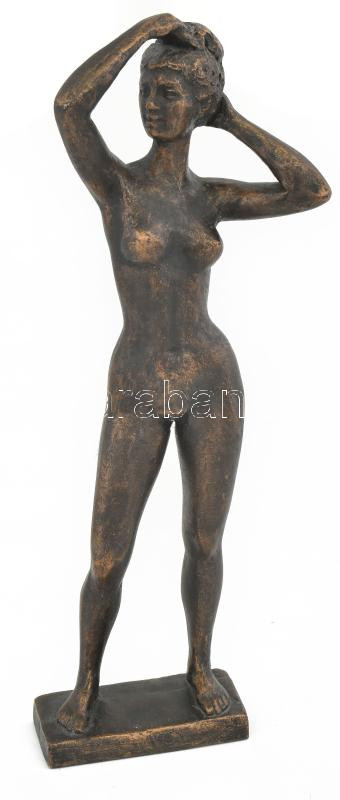 Leírás: Nyírő Gyula (1924-2005): Napozó akt. Bronzírozott műgyanta, jelzett, festett, m: 35 cm