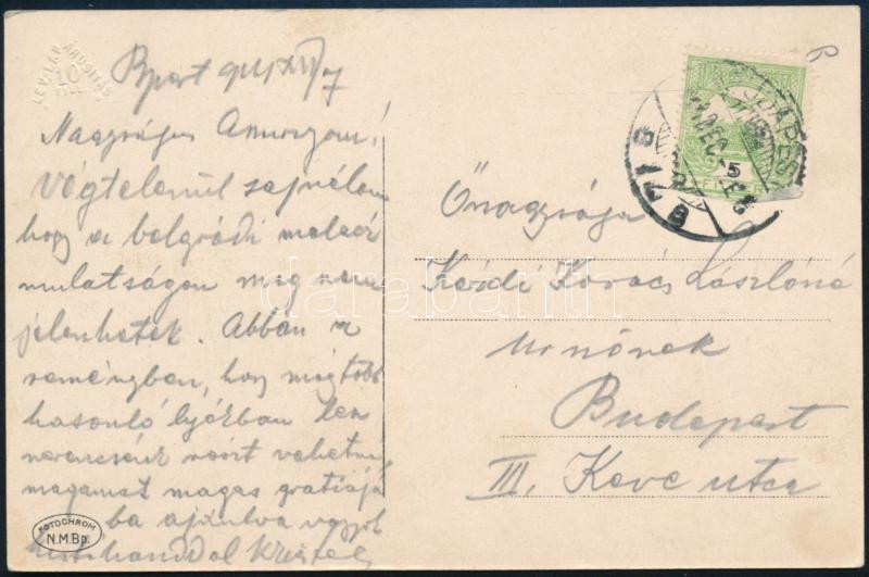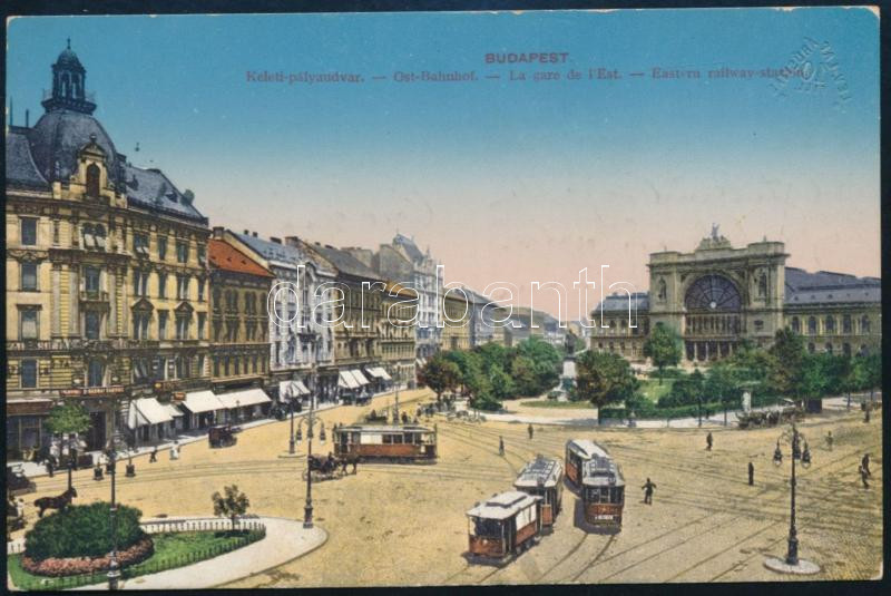 1914 Kézdi-Kovács Lászlóné, Kézdi-Kovács László (1864-1942) festőművész, műkritikus felesége részére szóló képeslap, a Keleti Pályaudvart ábrázoló színes képeslapon.