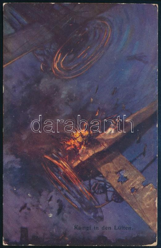 1916 Kézdi-Kovács László (1864-1942) festőművész, műkritikus által fiainak (László, Elemér) küldött autográf képeslap, a képeslap másik oldalán első világháborús légi harcot ábrázoló jelenttel.