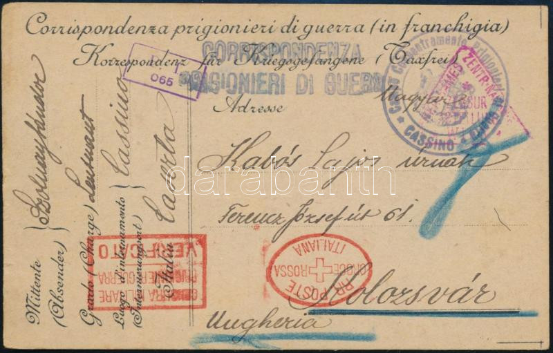 1918 Szolnay Sándor (1893-1950) festőművész I. világháborús hadifogoly tábori posta levelezőlapja Olaszországból édesanyjának és nevelőapjának Kolozsvárra.