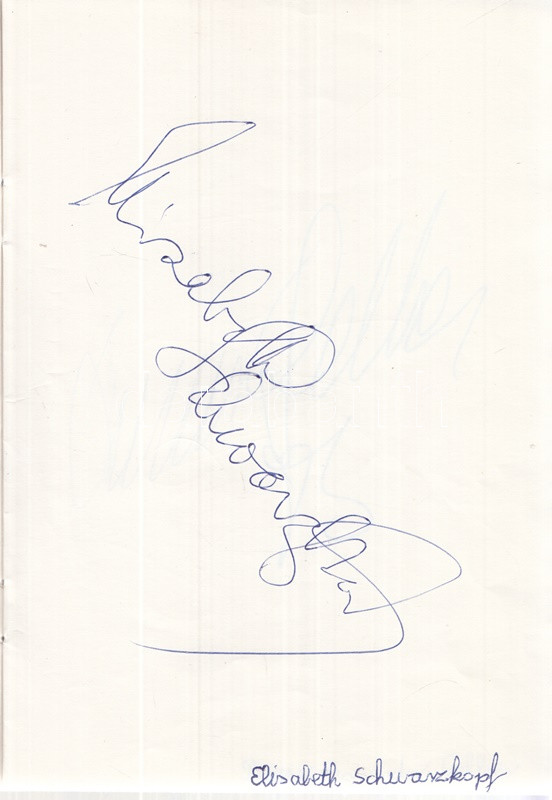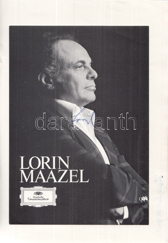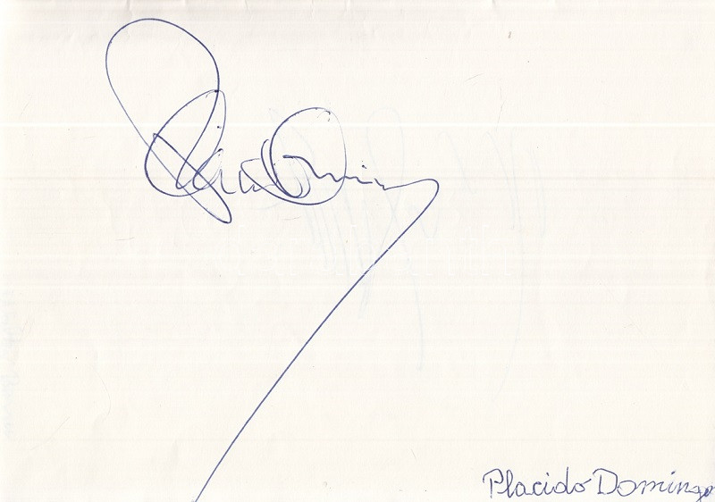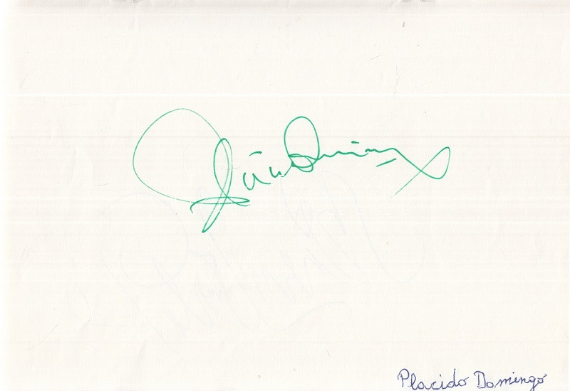 Plácido Domingo spanyol operaénekes, Lorin Maazel amerikai karmester és a nemzetközi komolyzenei világ kiválóságainak aláírása (1983) Aláírás-gyűjteményünk a nemzetközi zenei élet számos, Budapestre látogató egyéniségének szignóját, aláírt fotóját hordozza. A gyűjtemény 1983-ban készült. Aláírt portré és aláírás: Lorin Maazel (1930-2014) amerikai karmester, zeneszerző és hegedűművész. /// Aláírás: Francisco Araize (sz. 1950) mexikói operaénekes (tenor) -- Ileana Cotruba (sz. 1939) román operaénekesnő (szoprán) -- Anna Tomowa-Sintow (sz. 1941) bolgár operaénekesnő (szoprán) -- Wilma Lipp (1925-2019) osztrák operaénekes (szoprán) és zenepedagógus -- Alexis Sigismund Weissenberg (1929-2012) bolgár születésű francia zongoraművész -- Plácido Domingo (sz. 1941) spanyol operaénekes, a ,,Három Tenor) egyike, két aláírás -- Walter Berry (1929-2000) osztrák operaénekes (bassz-bariton) -- Elisabeth Schwarzkopf (1915-2006) osztrák-német operaénekesnő (koloratúrszoprán) és zenepedagógus -- Bruno Leonardo Gelber (sz. 1941) argentin zongoraművész -- Tom Gunnar Krause (1934-2013) finn operaénekes (bassz-bariton) -- Pilar Lorengar (1928-1996) spanyol operaénekesnő (szoprán). /// Fűzve.