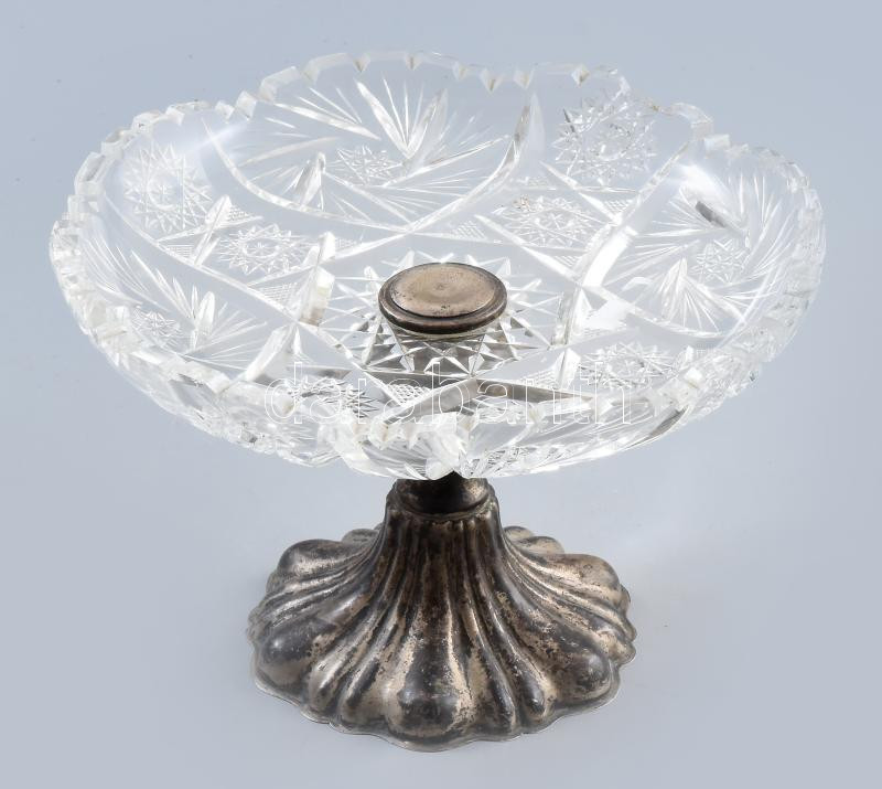 Leírás: Aufsatz. Kristály, ezüst (Ag) talppal. d: 21 cm .