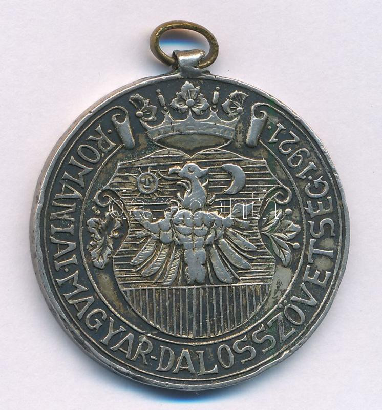 Leírás: 1932. "Romániai Magyar Dalosszövetség 1921" kétoldalas ezüstözött bronz emlékérem füllel, hátoldalán "1892-1932" gravírozással (35mm) T:VF ph.