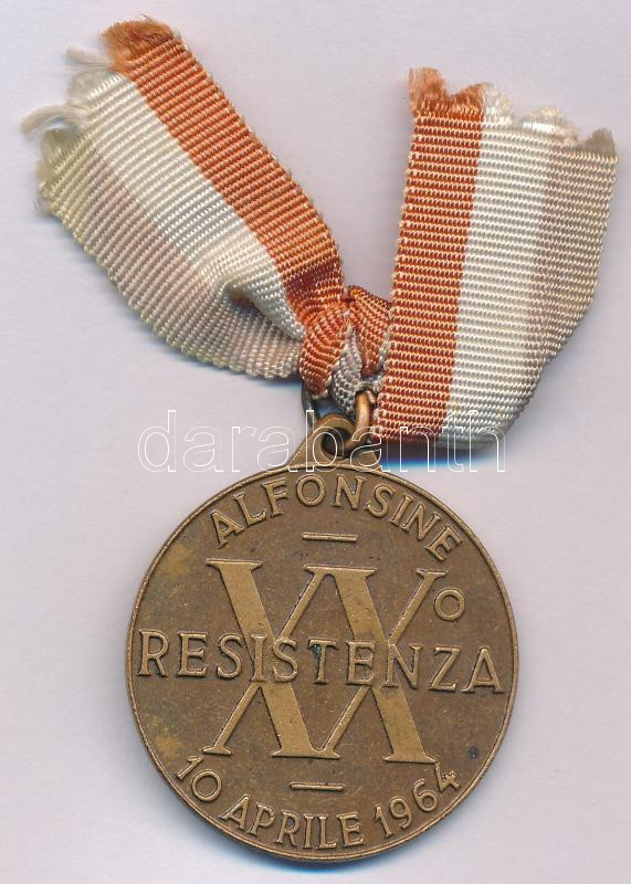 Olaszország 1964. "Az ellenállás 20. évfordulójára" bronz emlékérem szalaggal (32mm) T:AU Italy 1964. "For the 20th Anniversary of the Resistance" bronze commemorative medallion with ribbon (32mm) C:AU