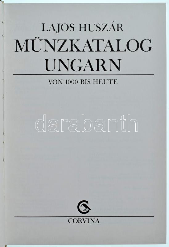 Huszár Lajos: Münzkatalog Ungarn von 1000 bis heute (Magyar Érmekatalógus 1000-től napjainkig). Budapest, Corvina, 1979. Kiváló állapotban, a külső védőborító kopott, szakadt.