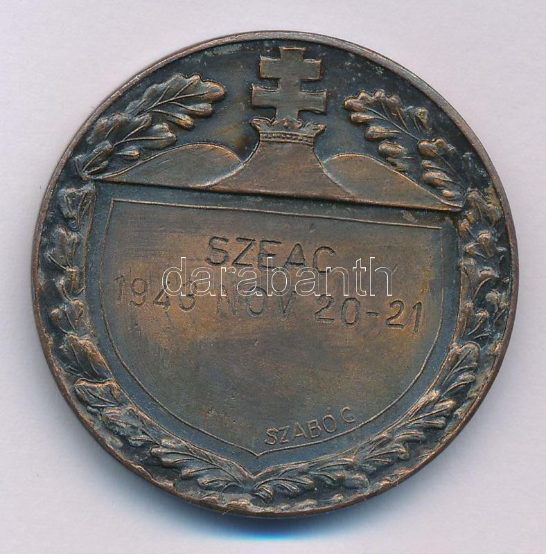 Leírás: 1943. Bronz sport emlékérem, hátoldalán "SZEAC (Szegedi EAC) 1943. Nov. 20-21" gravírozással, "Szabó G" gyártói jelzéssel (40mm) T:AU