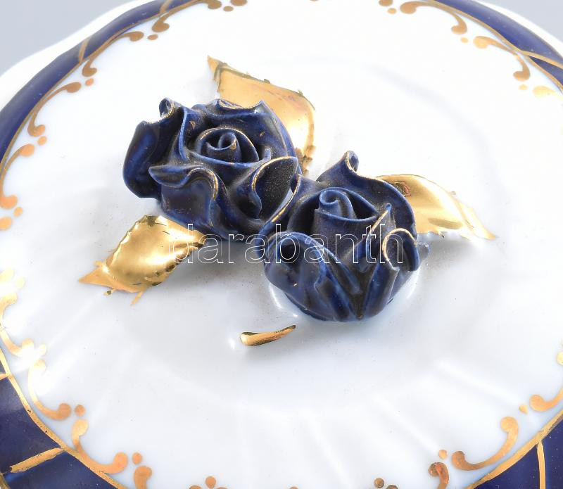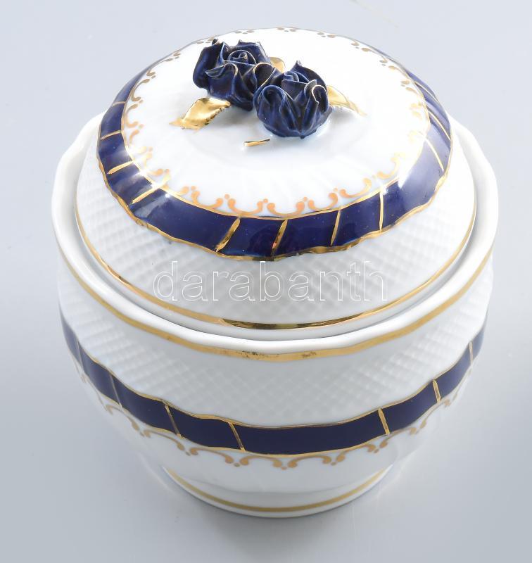 Leírás: Hollóházi kék mintás bonbonniere d: 12 cm, m: 13 cm. Kézzel festett, jelzett, hibátlan