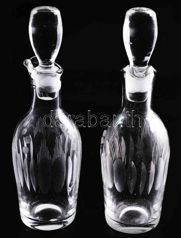 Leírás: Antik hutaüveg olajecet tartó pár. Köszörült mintával, hibátlan, m: 19,5 cm