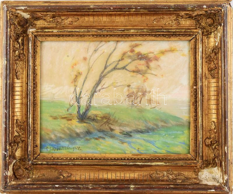 Leírás: Miklósi-Mutschenbacher Ödön (1881-1942): Viharos táj, 1924. Pasztell, papír, jelzett. Dekoratív, sérült, üvegezett fakeretben, 23×29 cm