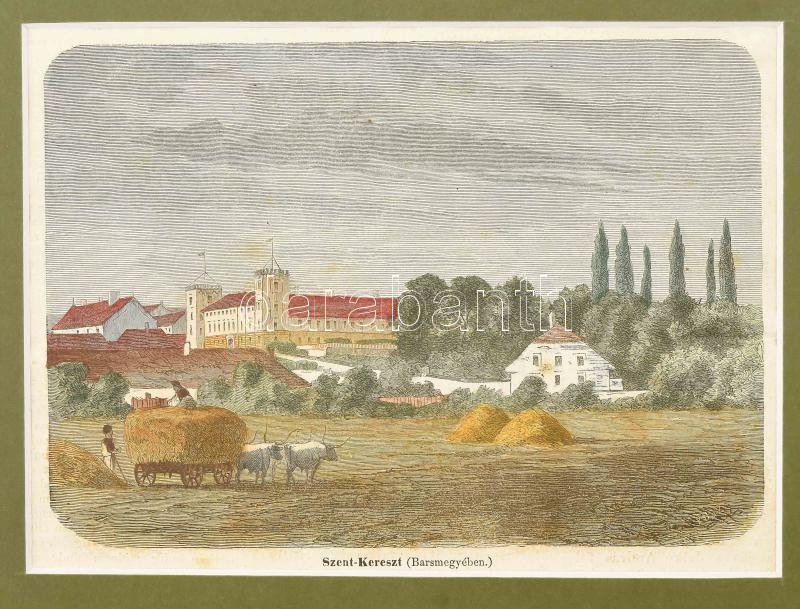 cca 1860-1870 Szent-Kereszt (Bars megyében), (Barsszentkereszt/Garamszentkereszt, Žiar nad Hronom/Svätý Kríž nad Hronom/Heiligenkreuz an der Gran), színezett fametszet, papír, In: Vasárnapi Ujság, paszpartuban, 14x19 cm, paszpartu: 24x29 cm