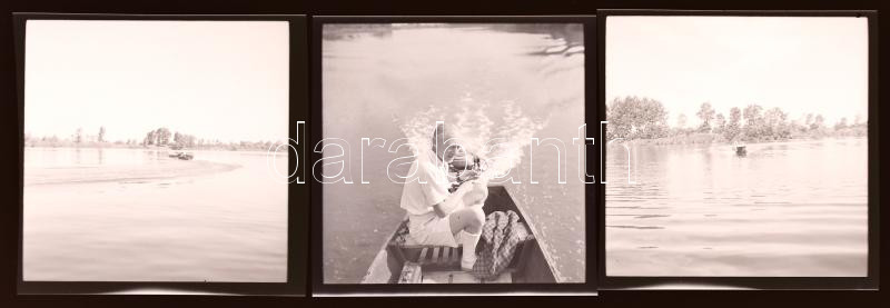 Leírás: Motorcsónak egy fotón, 3 db fotónegatív, 6×6 cm