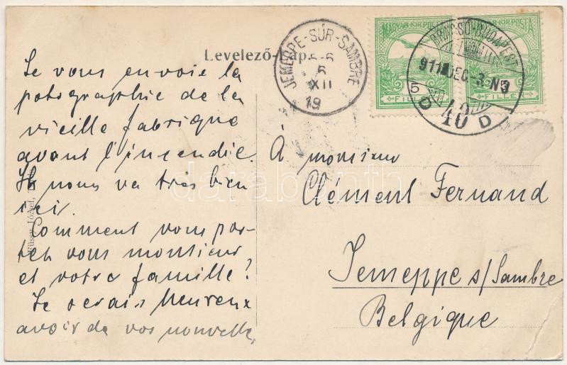 Leírás: 1911 Torda, Turda; Cellulózgyár. Füssy József kiadása / cellulose factory, pulp factory + "BRASSÓ - BUDAPEST 40 D" vasúti mozgóposta bélyegző (EB)