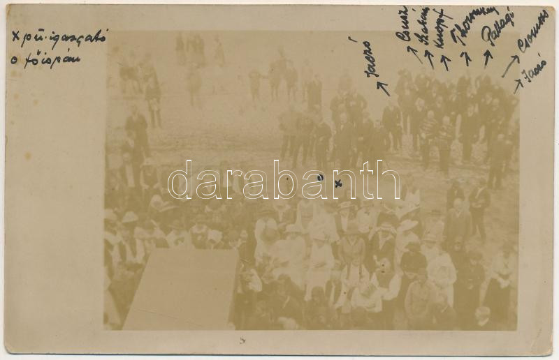 Leírás: 1916 Déva, augusztus 20-i Szent István napi körmenet a vármegyeház előtt a főispánnal / processon in front of the county hall, photo (EK)