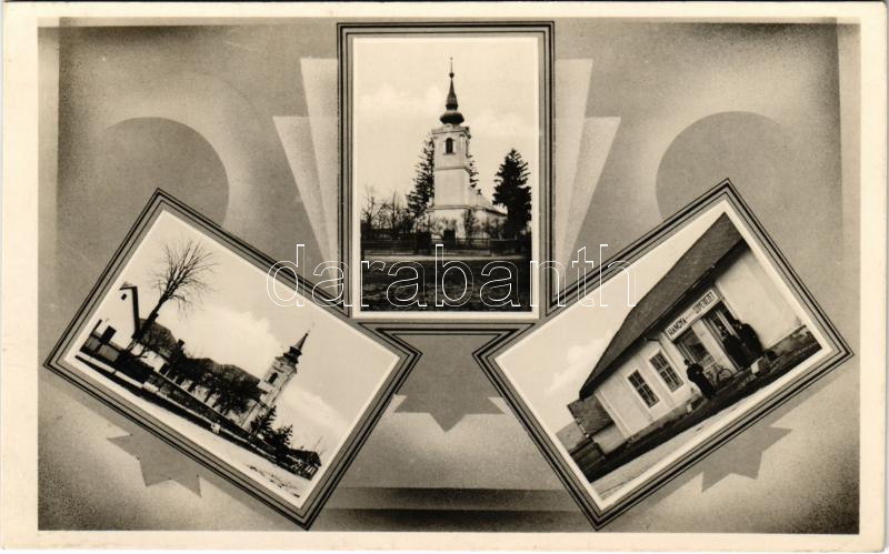 Leírás: 1941 Fugyivásárhely, Osorhei; templomok, Hangya szövetkezet üzlete és saját kiadása / churches, cooperative shop