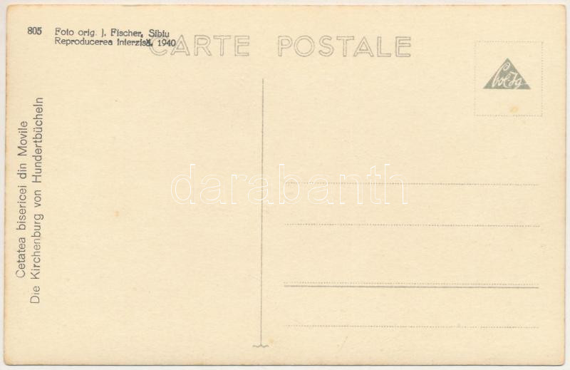 Leírás: Százhalom, Szászhalom, Hundertbücheln, Hondrubechi, Movile; Cetatea bisericei / Szász evangélikus erődtemplom / Lutheran fortified church. 805. Foto orig. J. Fischer 1940