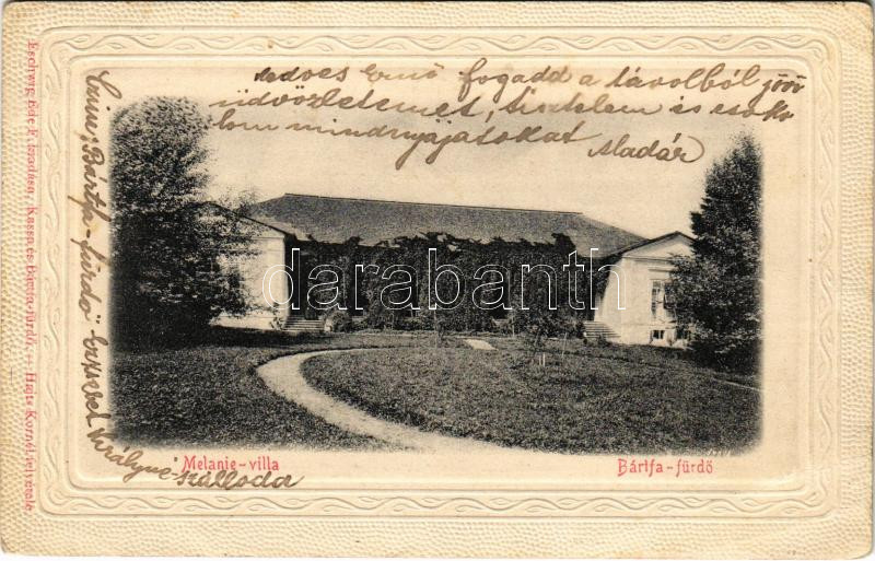 1902 Bártfa-fürdő, Bardejovské Kúpele, Bardiov; Melanie villa, Hajts K... https://www.darabanth.com/hu/464-Gyorsarveres/464.0/Kepeslapok/Felvidek~2000007/1902-Bartfa-furdo-Bardejovske-Kupele-Bardiov-Melanie-villa-Hajts-Kornel-felvetele-Eschwig-Ede~II3128948