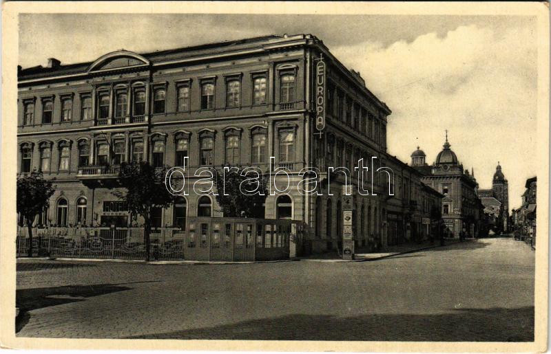 Kassa, Kosice; Hotel Europa a Mlynská ul. / Malom utca, Europa szállod... https://www.darabanth.com/hu/464-Gyorsarveres/464.0/Kepeslapok/Felvidek~2000007/Kassa-Kosice-Hotel-Europa-a-Mlynska-ul-Malom-utca-Europa-szalloda-uzletek-hirdetooszlop-~II3124965