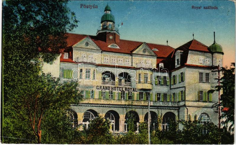 Pöstyén, Piestany; Royal szálloda. Vasúti levelezőlapárusítás 27. sz. ... https://www.darabanth.com/hu/464-Gyorsarveres/464.0/Kepeslapok/Felvidek~2000007/Postyen-Piestany-Royal-szalloda-Vasuti-levelezolaparusitas-27-sz-1917-hotel-spa-EK~II2902828