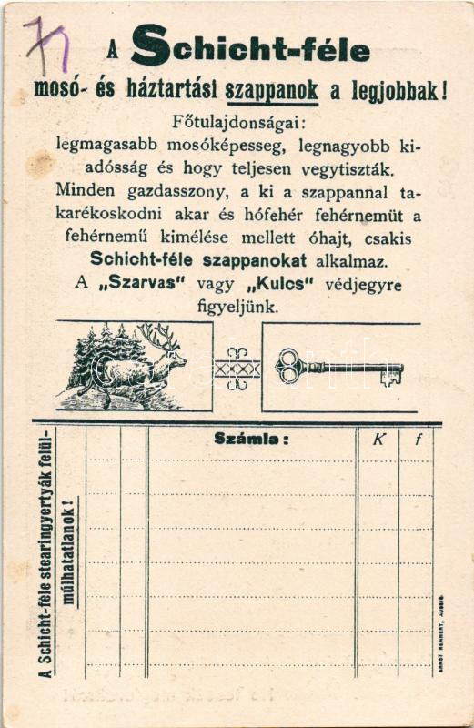 Leírás: Pozsony, Pressburg, Bratislava; Mária Terézia emlék. Ne tessék megfordítani! Schicht reklám a hátoldalon / monument, advertisement on the backside