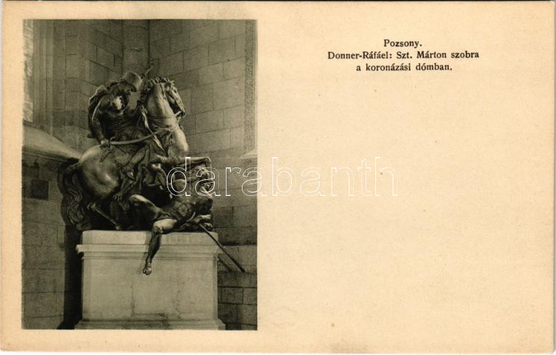 Pozsony, Pressburg, Bratislava; Szent Márton szobra a koronázási dómba... https://www.darabanth.com/hu/464-Gyorsarveres/464.0/Kepeslapok/Felvidek~2000007/Pozsony-Pressburg-Bratislava-Szent-Marton-szobra-a-koronazasi-domban-Donner-Rafael-Palugyay~II3125325