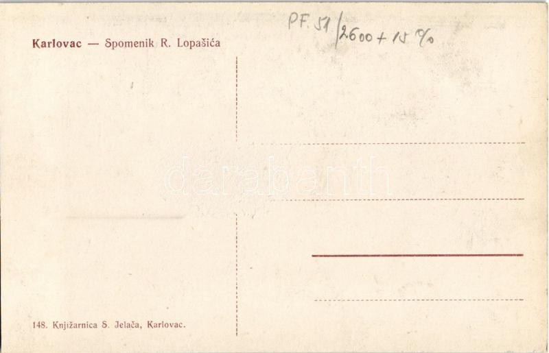 Károlyváros, Karlovac, Karlstadt; Spomenik Radoslav Lopasica / szobor ... https://www.darabanth.com/hu/464-Gyorsarveres/464.0/Kepeslapok/Horvatorszag~2000009/Karolyvaros-Karlovac-Karlstadt-Spomenik-Radoslav-Lopasica-szobor-monument-Rb~II3126584