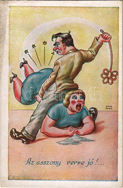 Leírás: Az asszony verve jó!... Hímsoviniszta humor / Hungarian male chauvinist humour s: Kaszás Jámbor (fl)