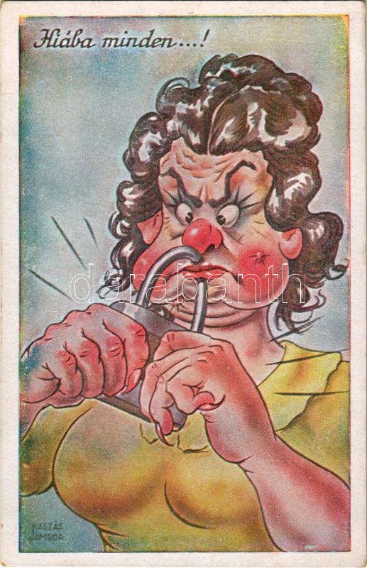Hiába minden! Feleség humor / Wife humour s: Kaszás Jámbor (EK) https://www.darabanth.com/hu/464-Gyorsarveres/464.0/Kepeslapok/Humor~2000054/Hiaba-minden-Feleseg-humor-Wife-humour-s-Kaszas-Jambor-EK~II3125248