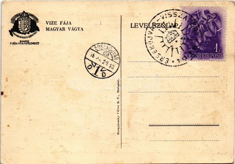 Vágvölgy, Váh Valley, Povazie; A Vág völgye, vize fája magyar vágya, tutajos cserkészek. Kiadja a Magyar Nemzeti Szövetség, Don Bosco / Hungarian irredenta propaganda art postcard from Váh river, scouts rafting s: Márton L. - Nógrády M. + "1938 ÉRSEKÚJVÁR VISSZATÉRT" So. Stpl (EK)
