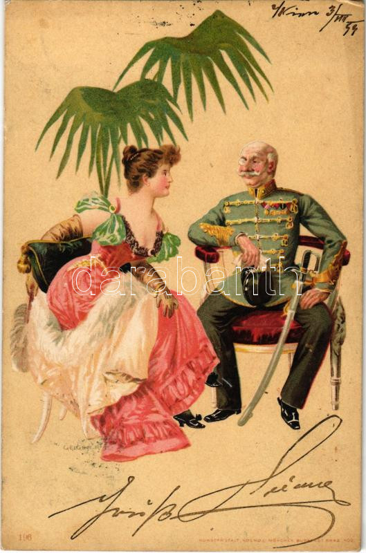 Leírás: 1899 (Vorläufer) Magyar katonatiszt és hölgy / Hungarian military officer. litho s: Geiger R.