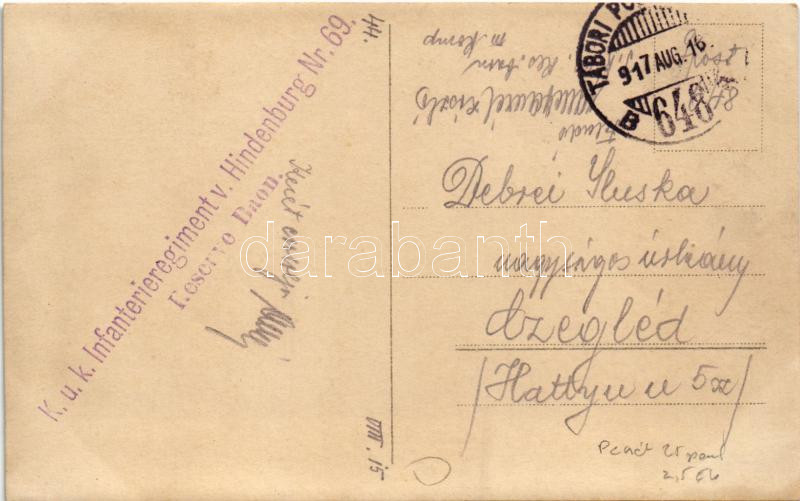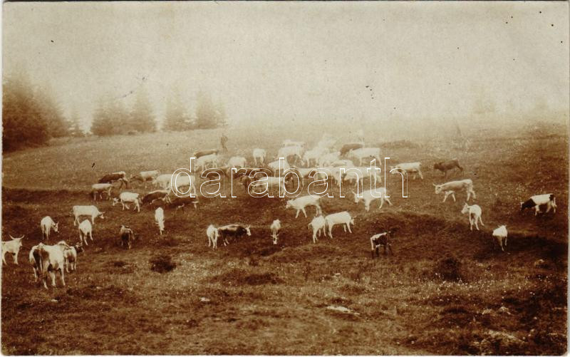 1917 A katonák ellátmányát biztosító állatok sereglete / WWI K.u.K. military, a herd of animals providing supplies for the soldiers. photo + "K.u.K. Infanterieregiment v. Hindenburg Nr. 69. Reserve Baon" "TÁBORI POSTAHIVATAL 648"