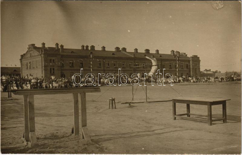 1919 Pervaja Recska, Pervaja Rjecska, Perwaja- Rjetschka (Vladivostok); a magyar tornászcsapat a Szent István napi ünnepségen az orosz hadifogoly táborban. Fotólap Stobbe Kálmán (1883-1936) építőmester, labdarúgó, a magyar válogatott edzője hagyatékából / WWI sport celebration of the Hungarian team in the Russian POW (prisoner of war) camp. photo