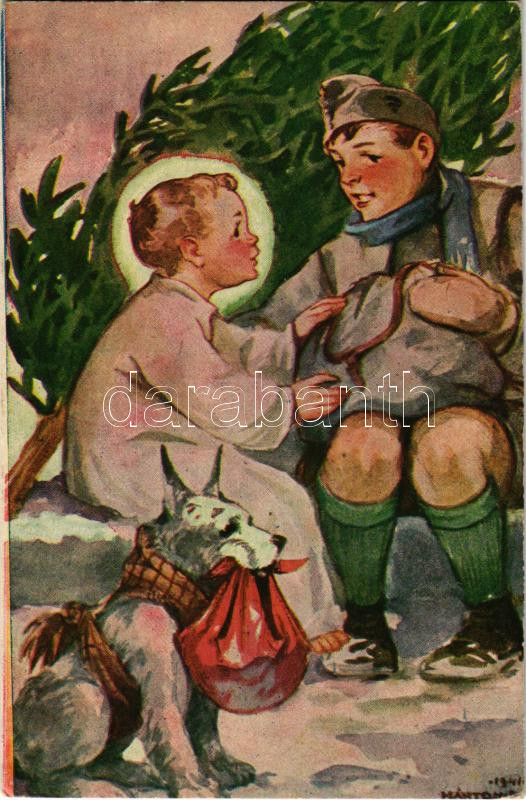 Leírás: Karácsony a harctéren. Márton L.-féle Cserkészlevelezőlapok Kiadóhivatala / WWII Hungarian military, Christmas, dog s: Márton L. (EK)