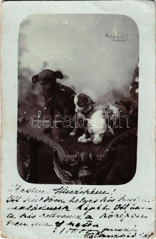 1900 Kutyák / dogs, photo (gyűrődések / creases) https://www.darabanth.com/hu/464-Gyorsarveres/464.0/Kepeslapok/Kutya~2000061/1900-Kutyak-dogs-photo-gyurodesek-creases~II3127713