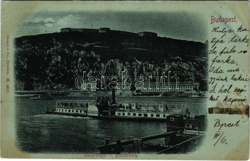 Leírás: 1899 (Vorläufer) Budapest XI. Gellérthegy és Citadella, "HATTYÚ" utasszállító gőzhajó, Rudas fürdő (EK)