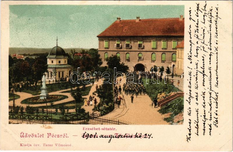 1901 Pécs, Erzsébet sétatér. Özv. Tausz Vilmosné kiadása (EK) https://www.darabanth.com/hu/464-Gyorsarveres/464.0/Kepeslapok/Magyarorszag~2000005/1901-Pecs-Erzsebet-setater-Ozv-Tausz-Vilmosne-kiadasa-EK~II2900037