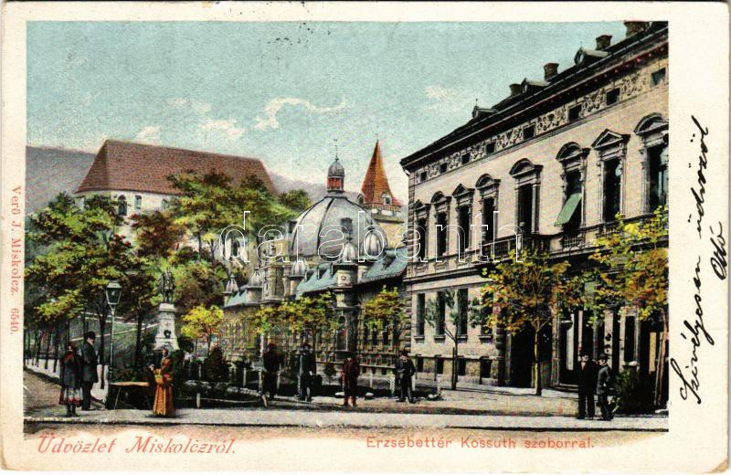 1902 Miskolc, Erzsébet tér a Kossuth szoborral. Kiadja Verö J. (kis sz... https://www.darabanth.com/hu/464-Gyorsarveres/464.0/Kepeslapok/Magyarorszag~2000005/1902-Miskolc-Erzsebet-ter-a-Kossuth-szoborral-Kiadja-Vero-J-kis-szakadas-small-tear~II3124789