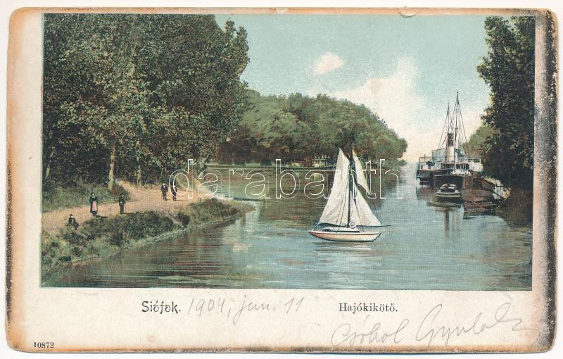 Leírás: 1904 Siófok, hajókikötő, gőzhajó, vitorlás (kis szakadás / small tear)