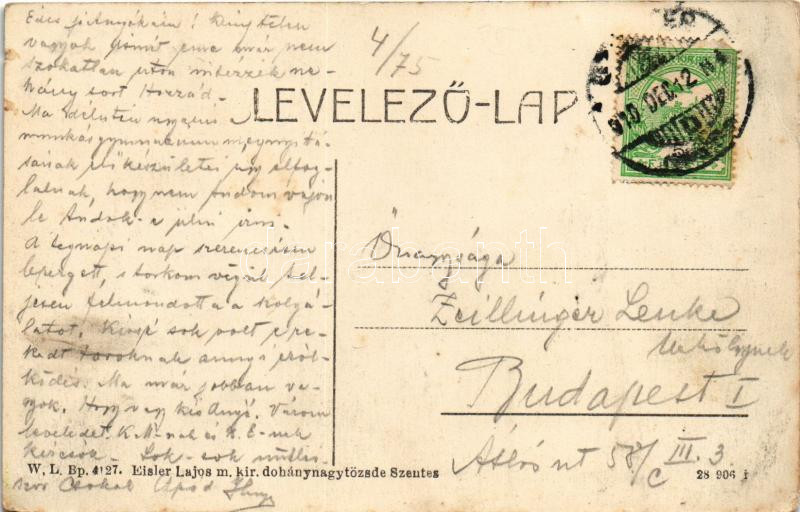 Leírás: 1910 Szentes, Magyar királyi állami főgimnázium. W.L. Bp. 4127. Eisler Lajos kiadása (EK)