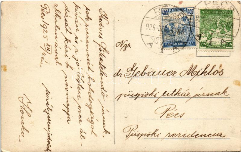 Leírás: 1925 Pécs, Dömör-kapui kilátó. dr. Gebauer Miklós c. apát, pápai kamarásnak küldött levél. Hegyessy Zoltán photo (EK)