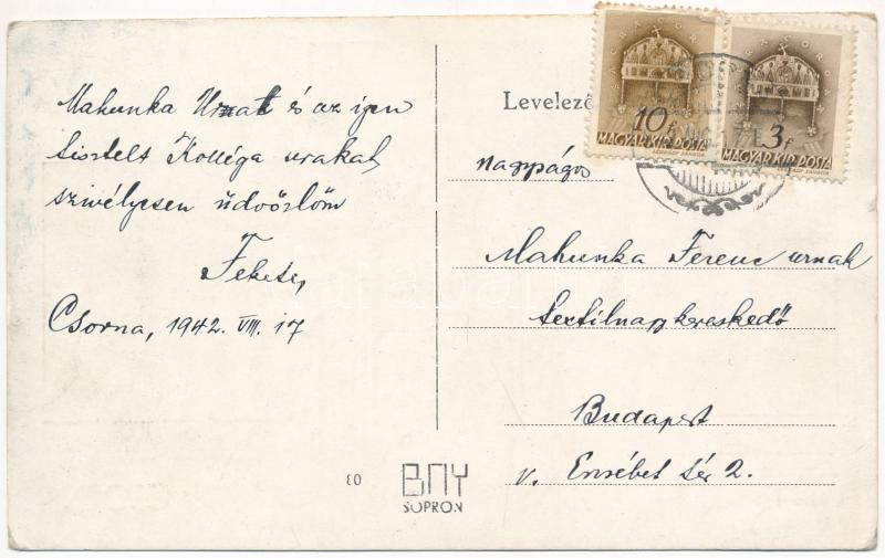 1942 Csorna, Jézus Szíve templom, belsők (EK) https://www.darabanth.com/hu/464-Gyorsarveres/464.0/Kepeslapok/Magyarorszag~2000005/1942-Csorna-Jezus-Szive-templom-belsok-EK~II3123826