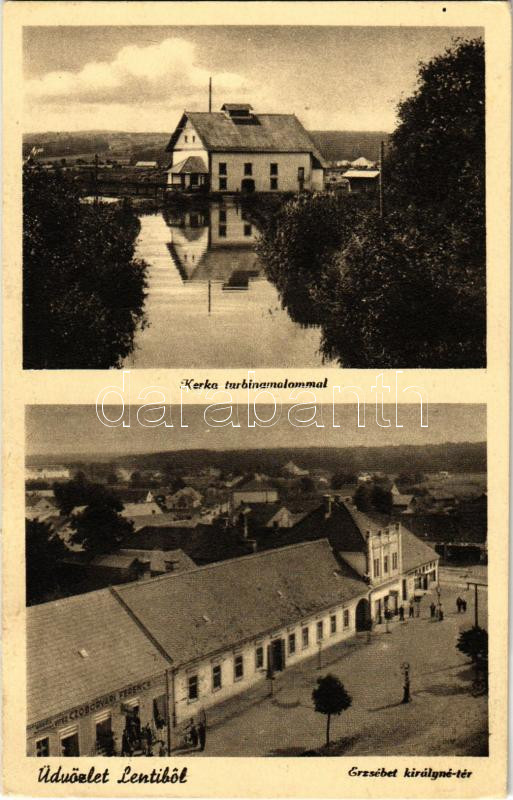 1949 Lenti, Erzsébet királyné tér, Kerka turbinamalommal. Csánk Ferenc... https://www.darabanth.com/hu/464-Gyorsarveres/464.0/Kepeslapok/Magyarorszag~2000005/1949-Lenti-Erzsebet-kiralyne-ter-Kerka-turbinamalommal-Csank-Ferenc-kiadasa~II3128648