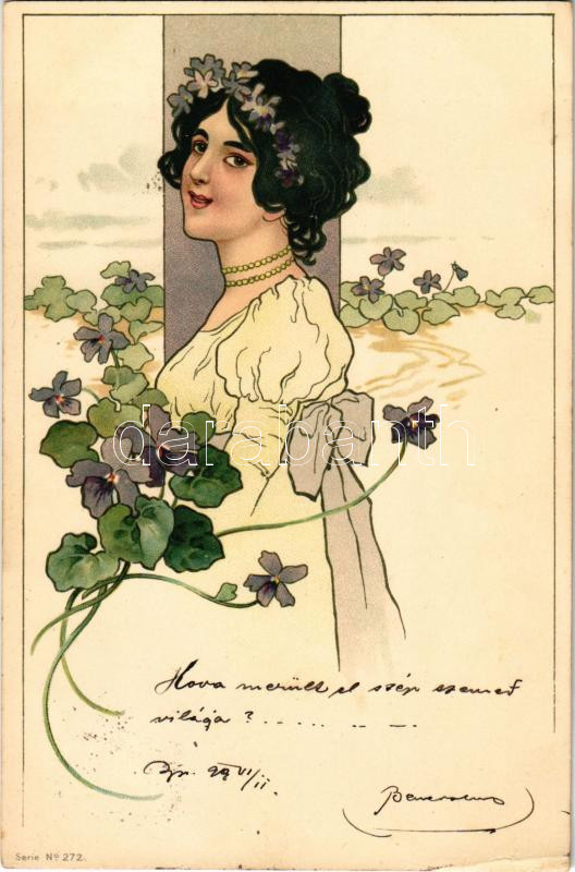 1899 (Vorläufer) Art Nouveau lady, floral, litho (EK) https://www.darabanth.com/hu/464-Gyorsarveres/464.0/Kepeslapok/Muveszlapok~2000065/1899-Vorlaufer-Art-Nouveau-lady-floral-litho-EK~II3129031