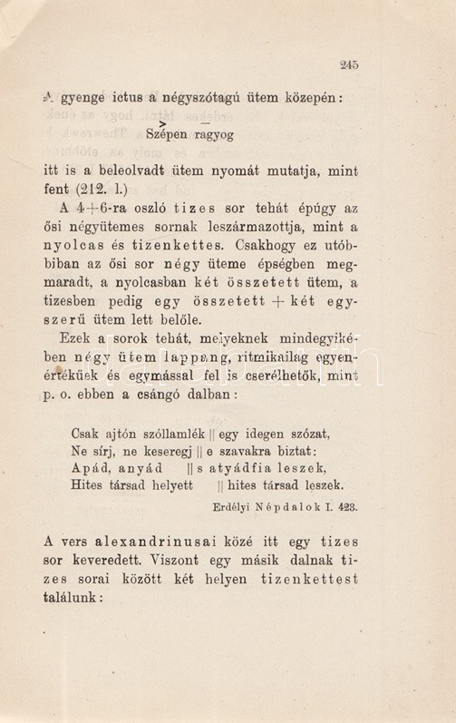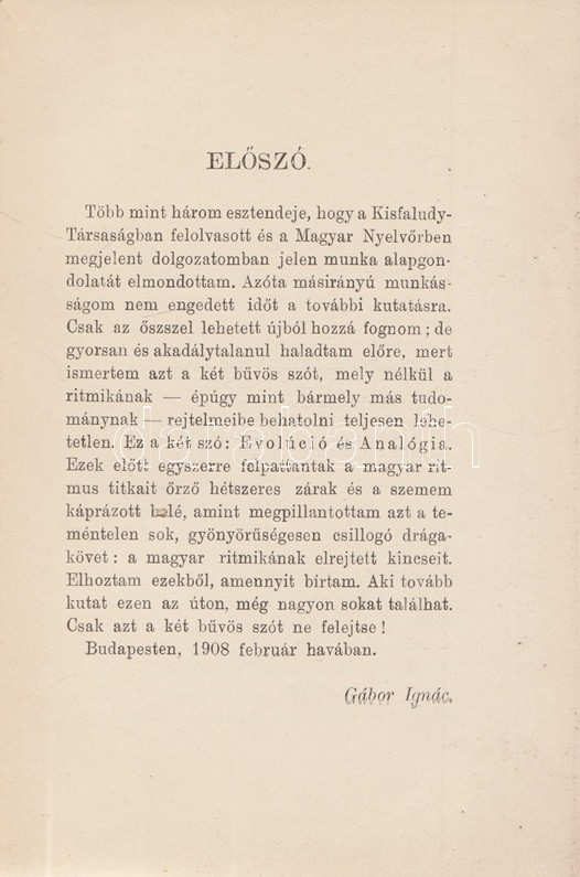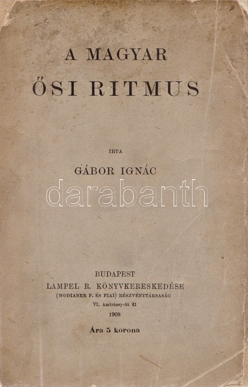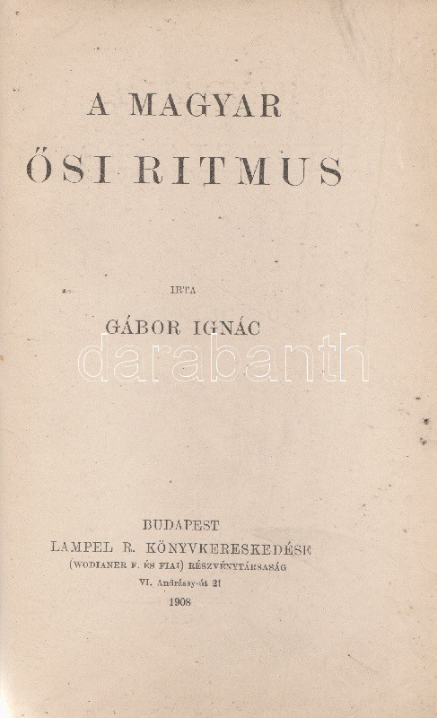 Gábor Ignác (1868-1945) műfordító, szerkesztő verstani munkái a korban élénk vitát váltottak ki. Ezen első, összehasonlító jellegű verstani munkáját két évtizedenként újabbak követték. Néhány oldalon apró foltosság.