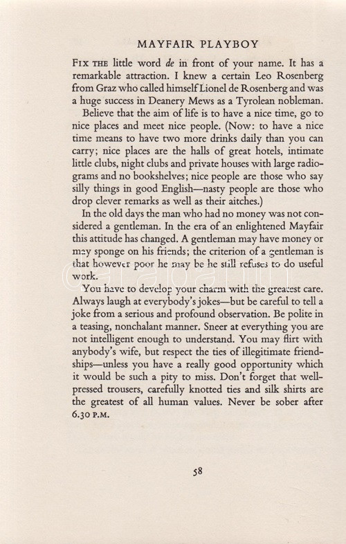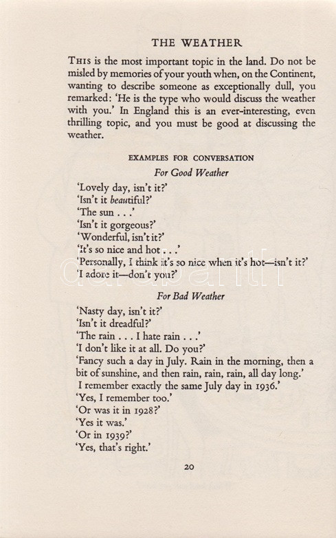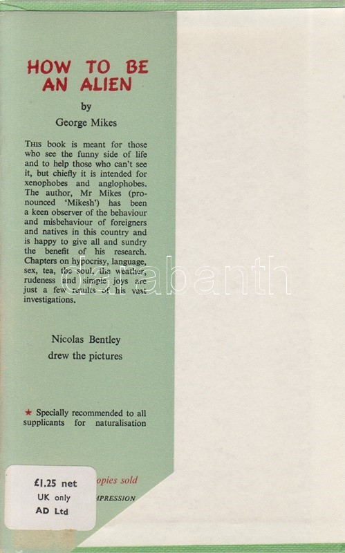 Az angol élet furcsaságairól írt Mikes-humoreszkeket az 1946. évi első kiadástól Nicolas Bentley egész oldalas és szövegközti karikatúrái kísérik. Példányunk a mű harminckettedik nyomásából származik. Magyar változata ,,Anglia papucsban" címmel jelent meg, 1947-ben, a koalíciós idők után egészen az 1980-as évek közepéig nem jelent meg Magyarországon kötete a nem mellékesen a Szabad Európa Rádió munkatársaként is működő humoristának. A címoldalon a szerző saját kezű aláírása.