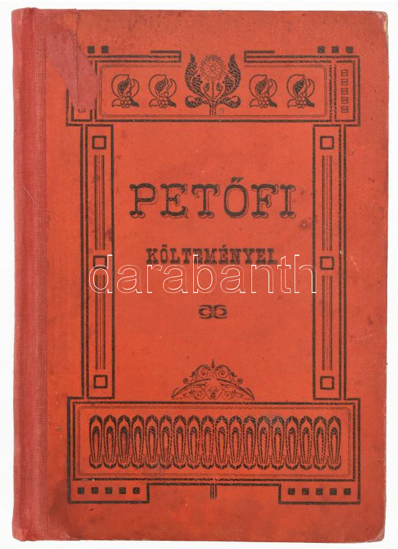 Petőfi Sándor költeményei. Temesvár,[1909],Polatsek, (Csendes Jakab-ny.), 554 p. Ritkább temesvári Polatsek-féle kiadás! Kiadói illusztrált félvászon-kötésben, a borítón kis kopásnyomokkal, az elülső borítón a papírborításon kis hiánnyal.